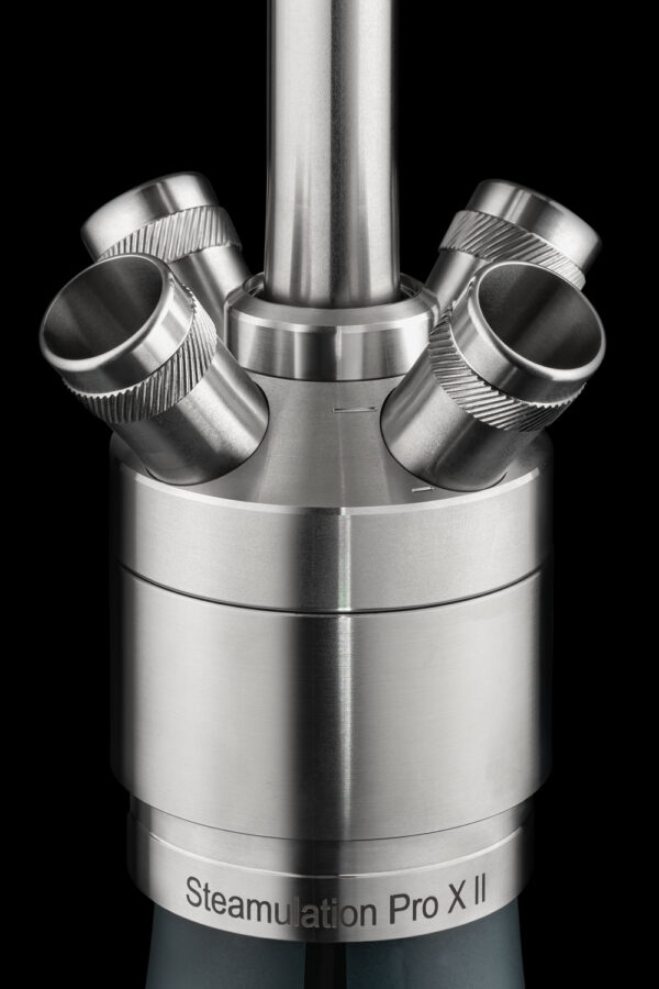 n Steamulation PRO X II yra naujausias Steamulation gaminys puikiai apibendrinantis jų prekinio ženklo ideologiją. Jei reiktų apibūdinti šią Steamulation seriją vienu žodžiu, tas žodis būtų individualumas. Reguliuojamas oro pralaidumas žarnų jungtyse, bei devynias pozicijas turintis reguliuojamas apatinis kaljano vamzdelis leidžia vartotojui keisti kaljano trauką pagal savo poreikį.